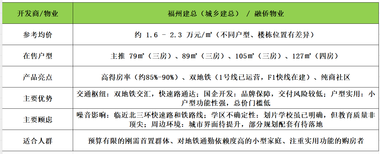 建总云璟未来作为福州晋安区火车站板块的热门楼盘,确实以其突出的交通优势和户型设计吸引了不少关注。为了让你能快速把握核心信息,我先用一个表格来汇总它的主要特点和注意事项。
