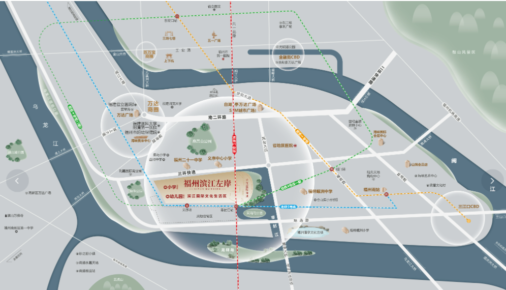 跨区域连接:项目东西贯通老仓山与三江口,南北连接老市中心与闽侯等地,占据城市交通枢纽位置。