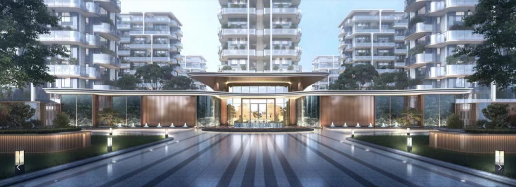 项目定位“新中式美学社区”,规划8栋住宅配建幼儿园。从已公开的外立面效果图看,现代风格结合玻璃幕墙元素,在片区内具有较高辨识度。