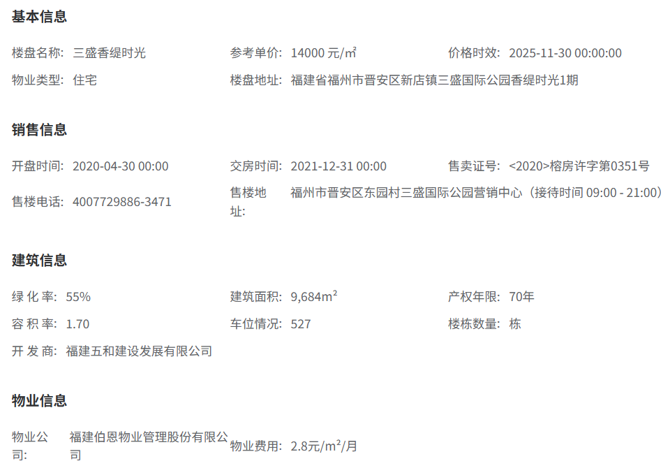 三盛香缇时光位于福州市晋安区象峰二路,是三盛国际公园的重要组成部分。项目由福建五和建设发展有限公司开发,物业管理由福州伯恩物业管理有限公司负责,为居民提供全方位的服务。