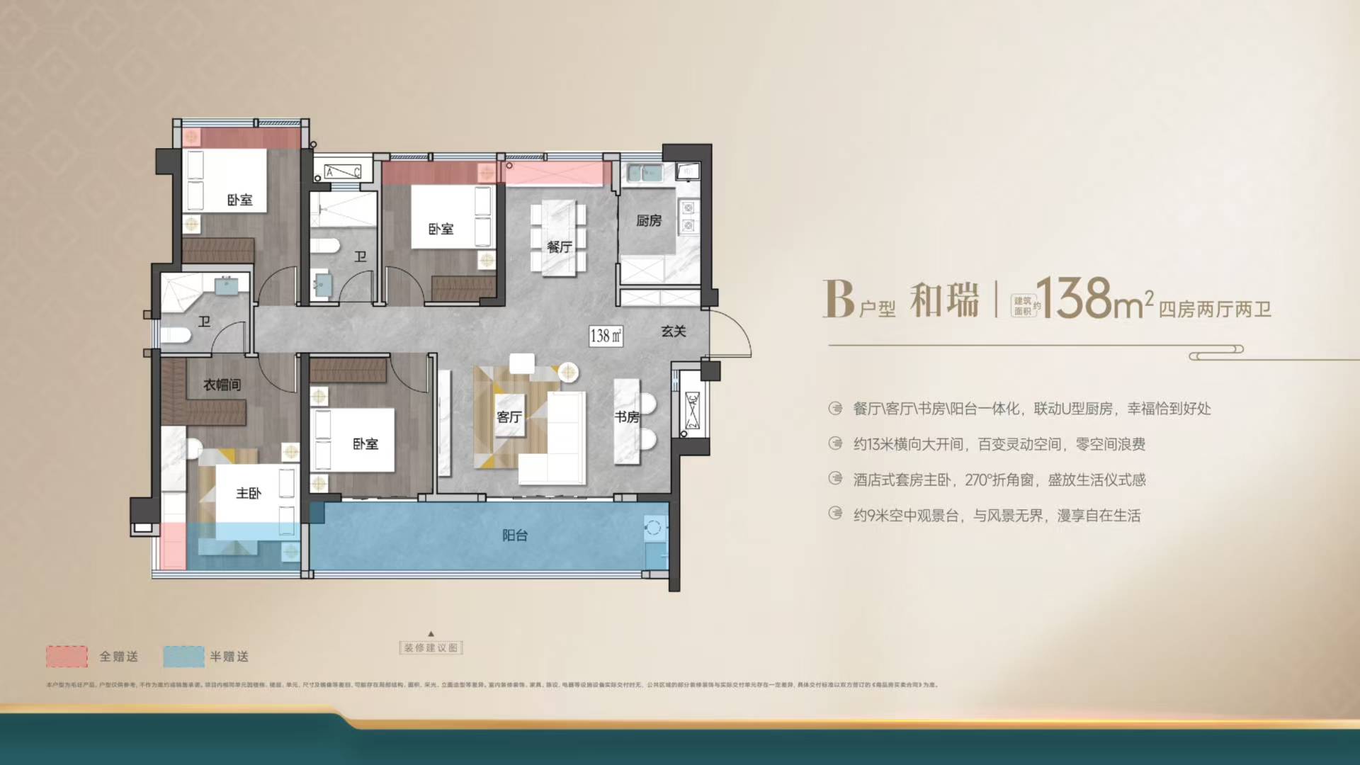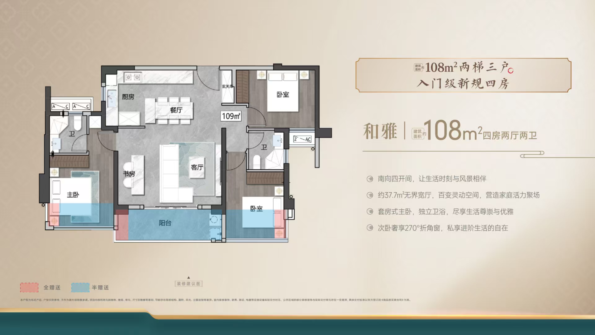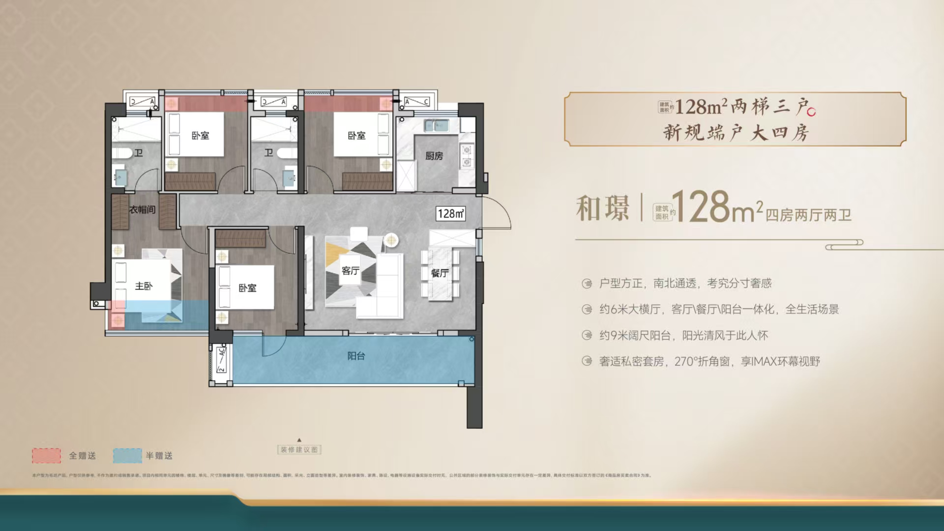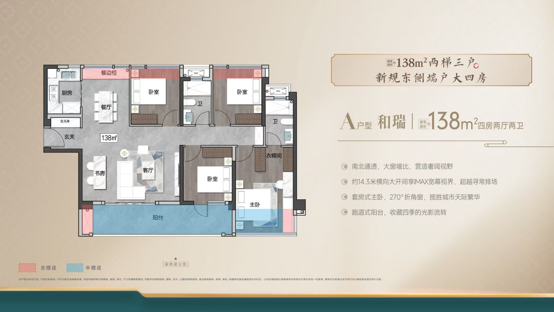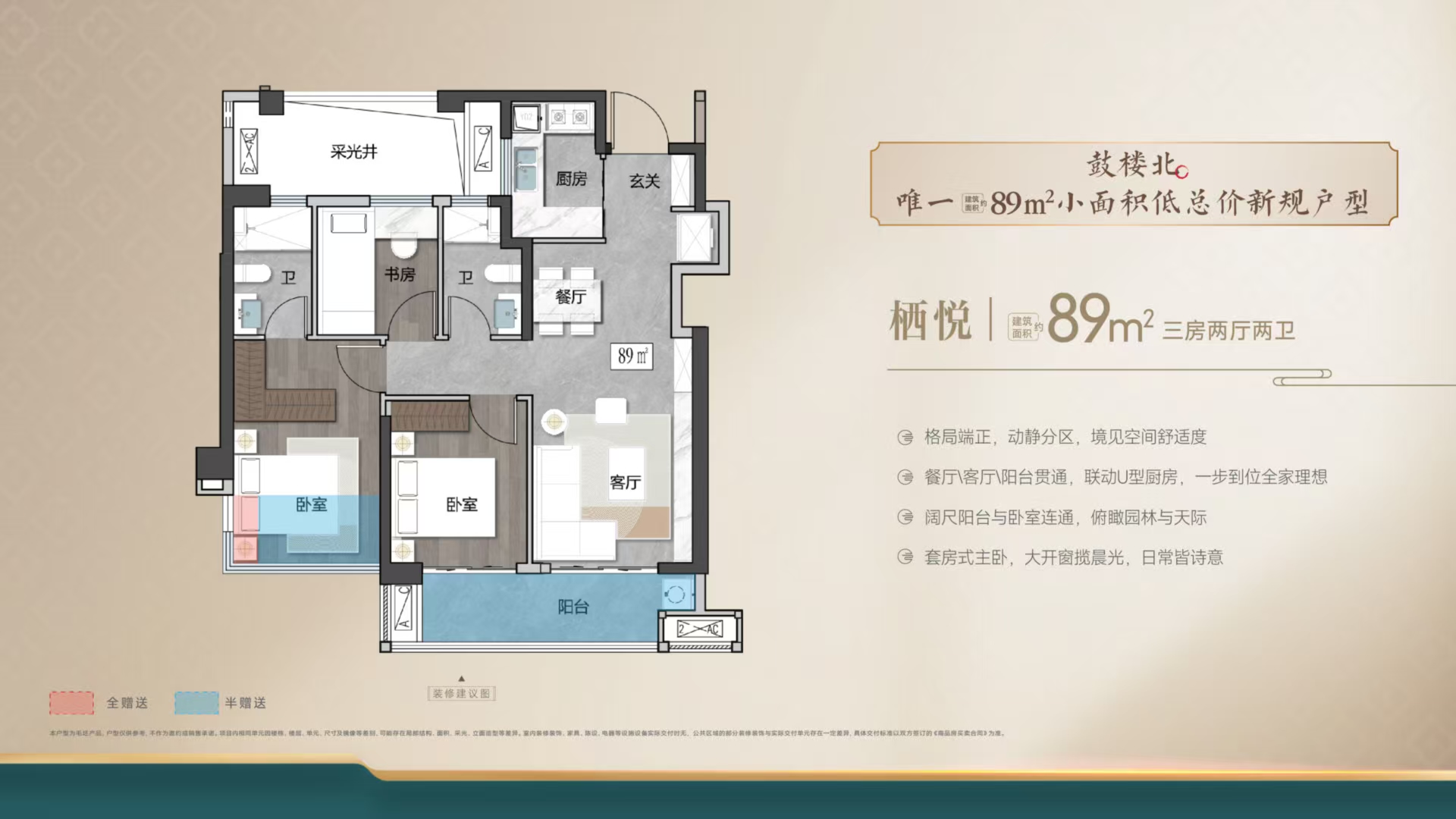 项目户型设计多样,满足从刚需到改善的不同家庭需求。起步户型为89平方米的三房,最大户型可达143平方米的四房。建筑设计方案融合了福州传统建筑文化元素,采用香槟金线条现代化演绎传统飞檐元素,体现了东方理想人居的理念。