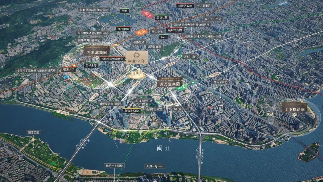 中寰悦府坐落于福州鼓楼区乌山路与西二环交界处的“黄金三角”地带,地处西湖到闽江北CBD城市发展动脉二环路的中心位置,毗邻福州市政府、福州万象城,享闽江北CBD三位一体的优质配套。