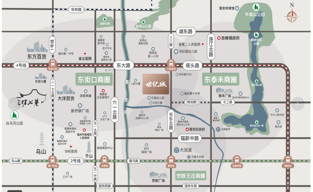 生态与医疗资源方面,金鸡山公园、晋安河公园近在咫尺,为业主提供了日常休闲场所。