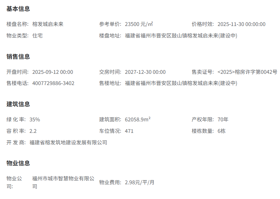 榕发城启未来由福州城市建设投资集团旗下的榕发置地开发,国企背景为其提供了强有力的交付保障。