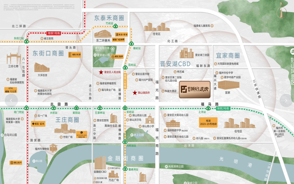 项目周边汇聚五大生态公园:光明港公园、水上公园、温泉水乐园、鼓山风景区、晋安湖公园。