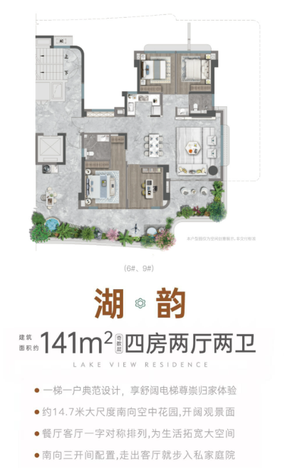 榕发誉湖定位纯粹改善社区,主力户型为141㎡至180㎡的全四房设计,精准面向城市精英阶层。