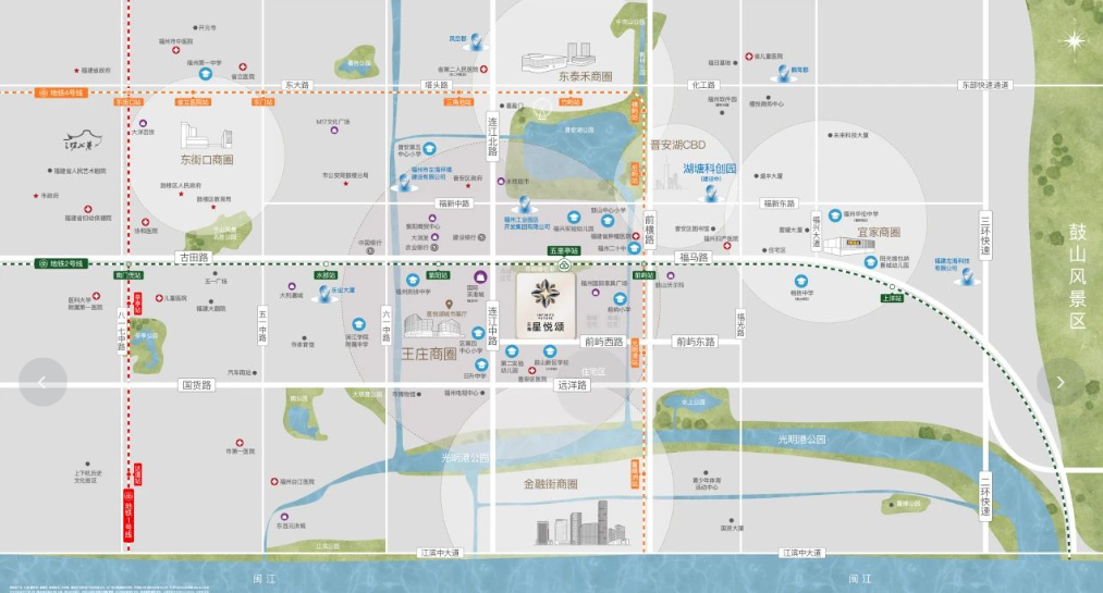 左海星悦颂坐落于晋安区连江路东侧、福马路南侧,连潘旧改项目出让地块一,地处福州二环内稀缺的纯商住宅区域。项目紧邻地铁2号线五里亭站,直线距离仅约140米,真正实现了“地铁到家门口”的便捷生活。同时,周边地铁4号线前屿站也开通在即,双地铁交汇,畅达全城。