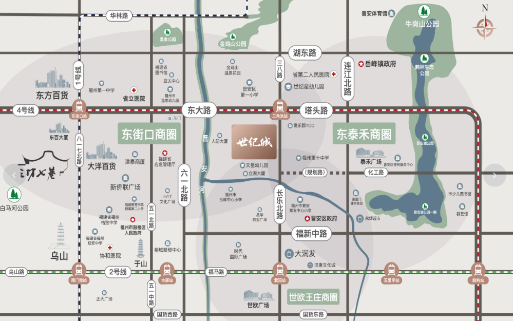 世纪城二期(备案名:隆泰花园二期)位于福州市晋安区岳峰镇长乐北路64号,地处福州二环内塔头板块,是城市核心区的稀缺新房项目。