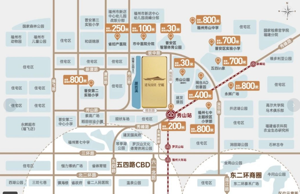 商业配套完善:步行范围内有五四in象商业综合体、永辉广场,约800米距离。与福州顶流商业综合体——东二环泰禾广场仅一站地铁之隔。