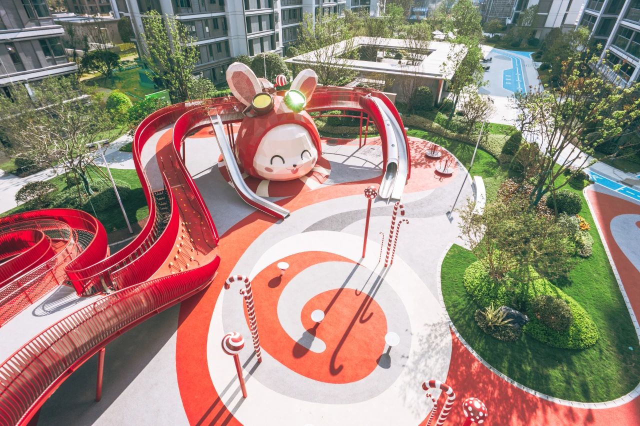 北源云筑作为福州二环内稀缺的百亩低密度纯商大盘,总占地面积近115亩,容积率仅2.0,规划23栋7-16层的洋房和小高层建筑。项目主打76-148㎡户型,均价约23000元/㎡,是福州主城区少有的高性价比楼盘。项目最大的亮点之一是打造了福州首个「全龄儿童友好社区」,投资约300万元原创打造了“榕榕兔”IP双主题乐园,总占地面积约1700㎡,最高约7.8米,规模之大在福州社区中少见。
