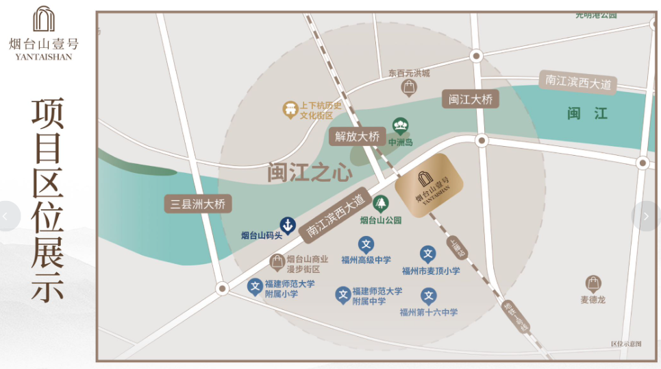 自然景观资源丰富:项目紧邻闽江,拥有壮丽的一线江景,同时被烟台山公园、江心公园、南江滨公园等绿肺环绕,形成“出则繁华,入则宁静”的稀缺席位。 楼盘基本信息:稀缺精品,定位高端