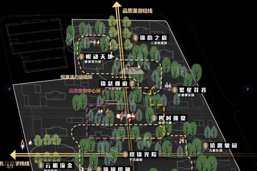 约5.2万平方米“超级绿毯”社区花园,规模堪比8个足球场,灵感源于知名画作《闽江游》,规划层层嵌套的立体庭院。