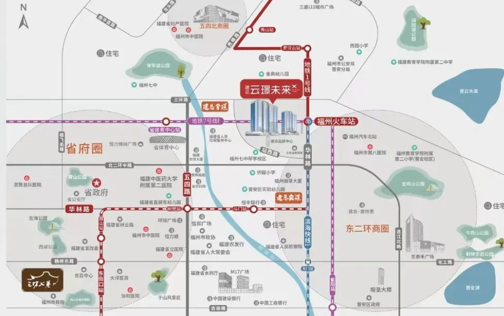 项目毗邻福州火车站,与在建的F1滨海快线(2026年通车)及规划中的地铁线路形成“三线交汇”的黄金枢纽。