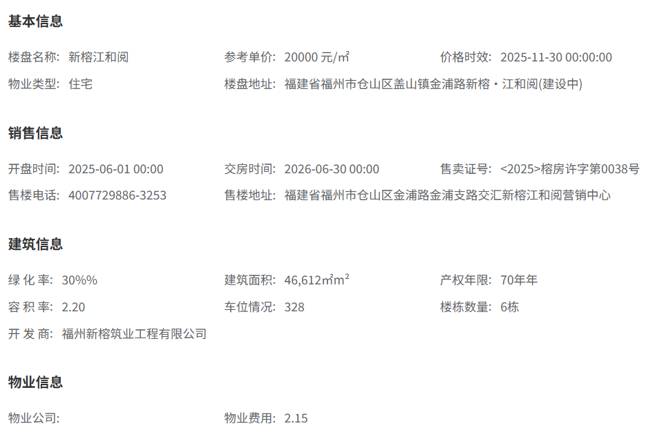 新榕·江和阅均价约20000元/㎡,总价区间约220-270万,在福州主城区中具有明显的价格吸引力。