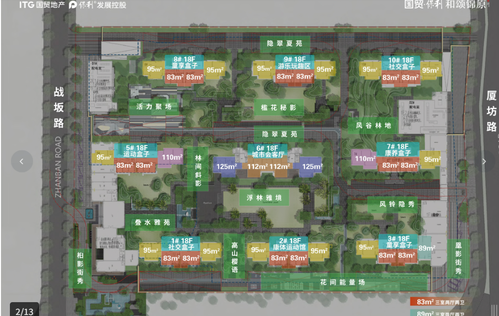 国贸保利和颂锦原的主力户型区间为83-125平方米的三至四房,满足不同家庭结构的居住需求。