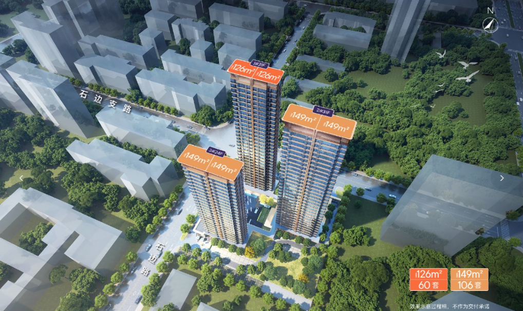 其中128㎡共62套,149㎡共104套。