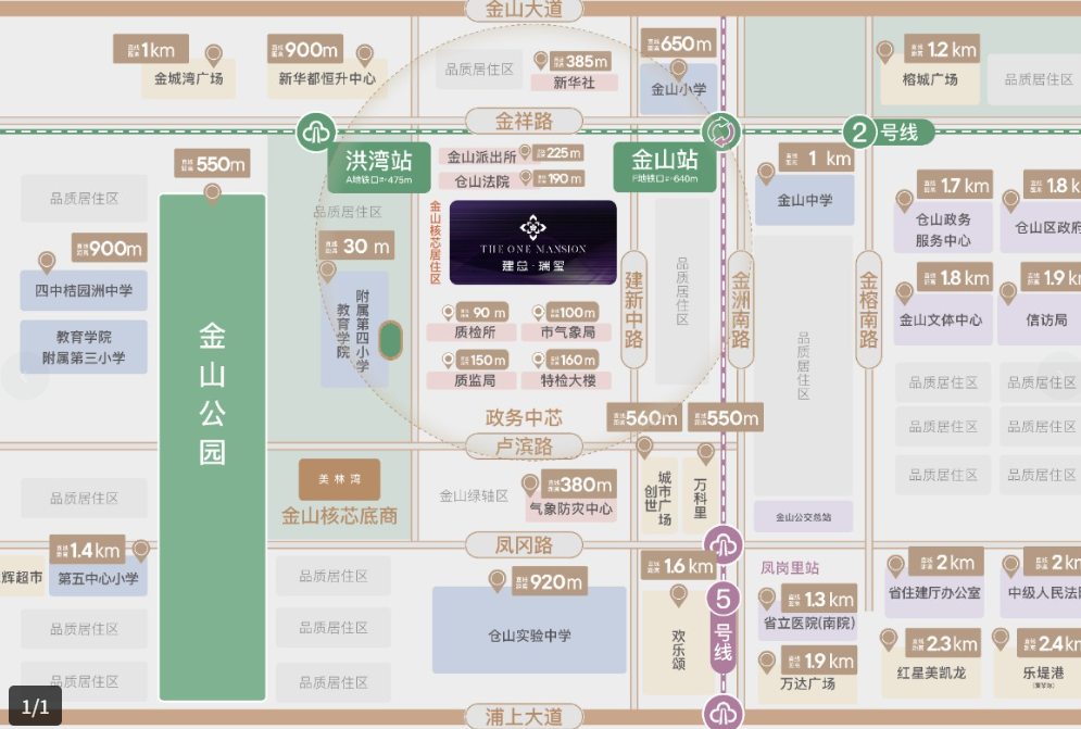 除建总瑞玺外,建总在大金山板块还开发了**建总流花溪、建总瑞璟轩以及建总雍玺湾等项目,形成了完善的品牌产品线。 02 区位交通:金山核心,地铁便捷