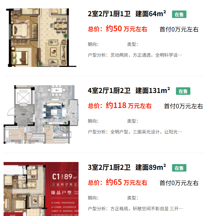 户型 二居(1) 三居(2) 四居(4)