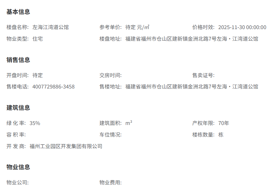 目前左海·江湾道公馆的正式价格尚未公布。