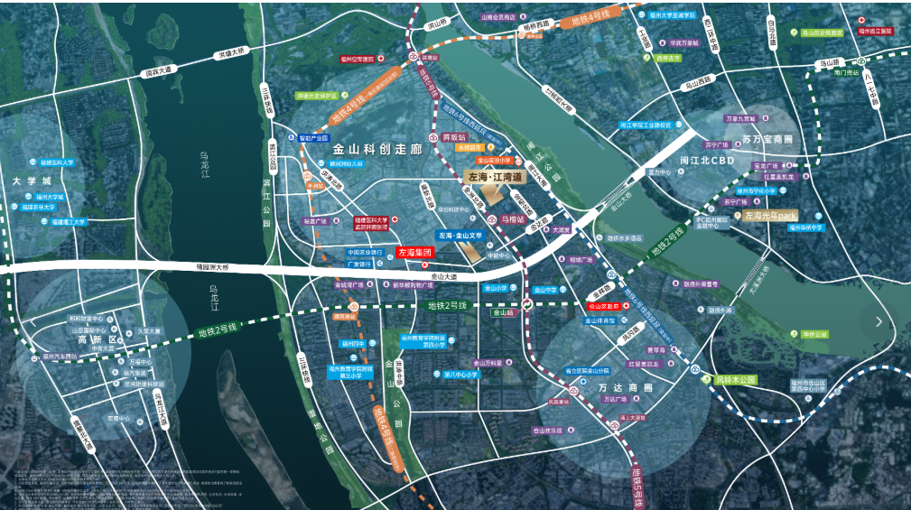 主干路网发达,北接金山大道快速通往鼓楼,南经浦上大道连接仓山核心区,西侧尤溪洲大桥直达台江,自驾通勤十分便利。