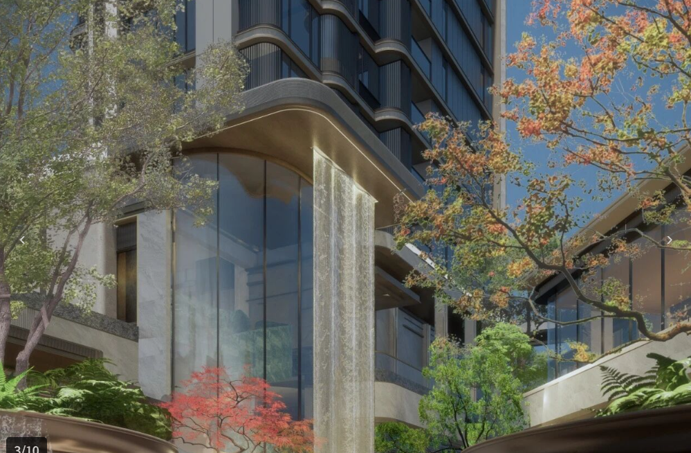多层级的高差景观设计,悬泉瀑布将山水之意引入园中,四季观景连廊、下沉花园、凤翎桥、冥想花园等构建独特的海派归谧之旅。 04 品牌背景与交付时间:本土国企的诚意之作