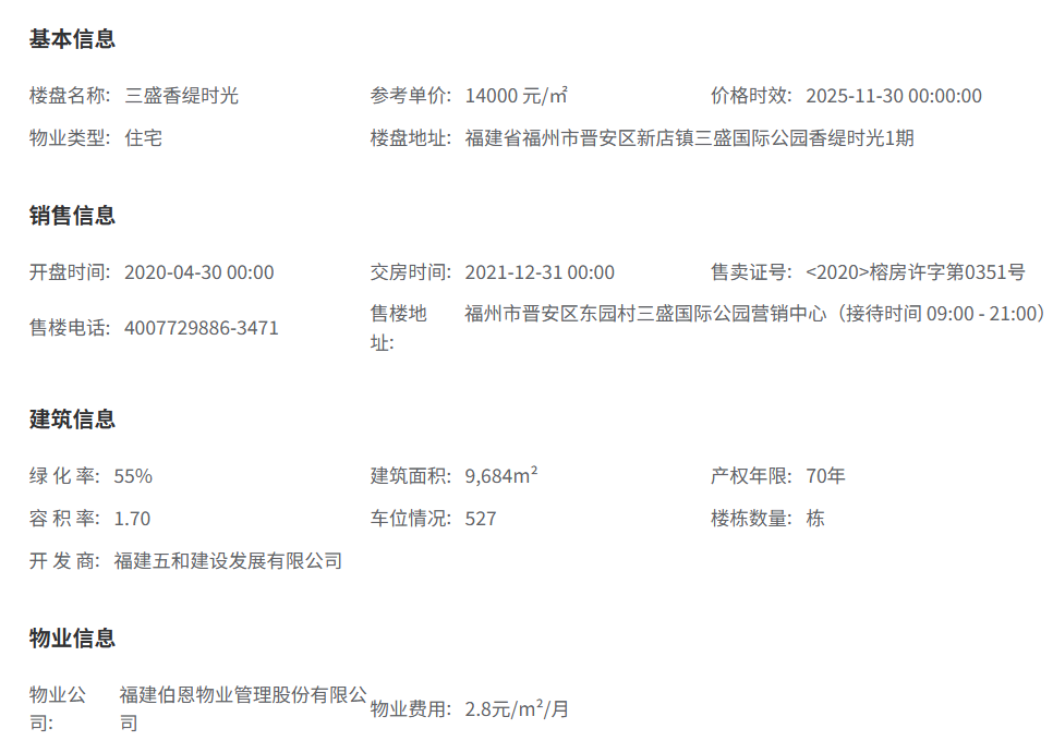 三盛香缇时光由福建五和建设发展有限公司(三盛集团)开发,三盛集团在福州地产市场有着良好的口碑和丰富的开发经验。