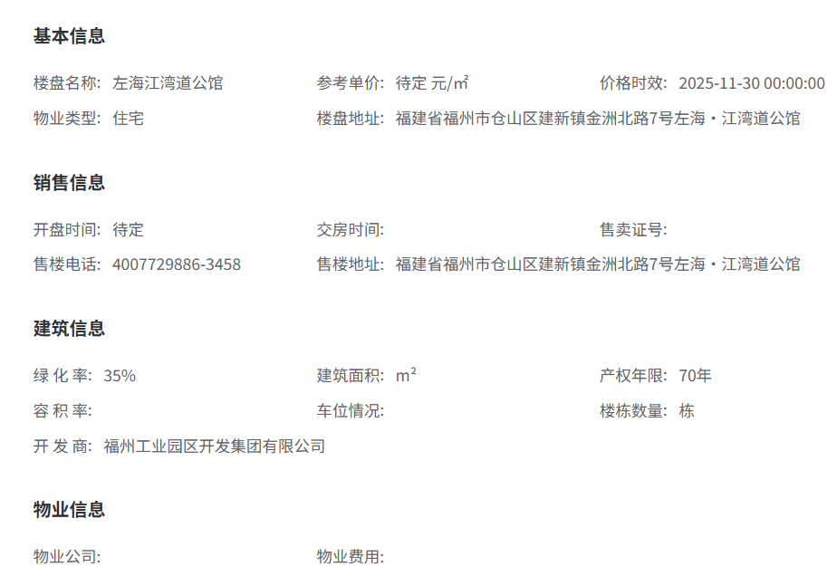 左海·江湾道公馆的开发商是福州工业园区开发集团有限公司,隶属于左海控股集团,是福州知名的国有企业集团。