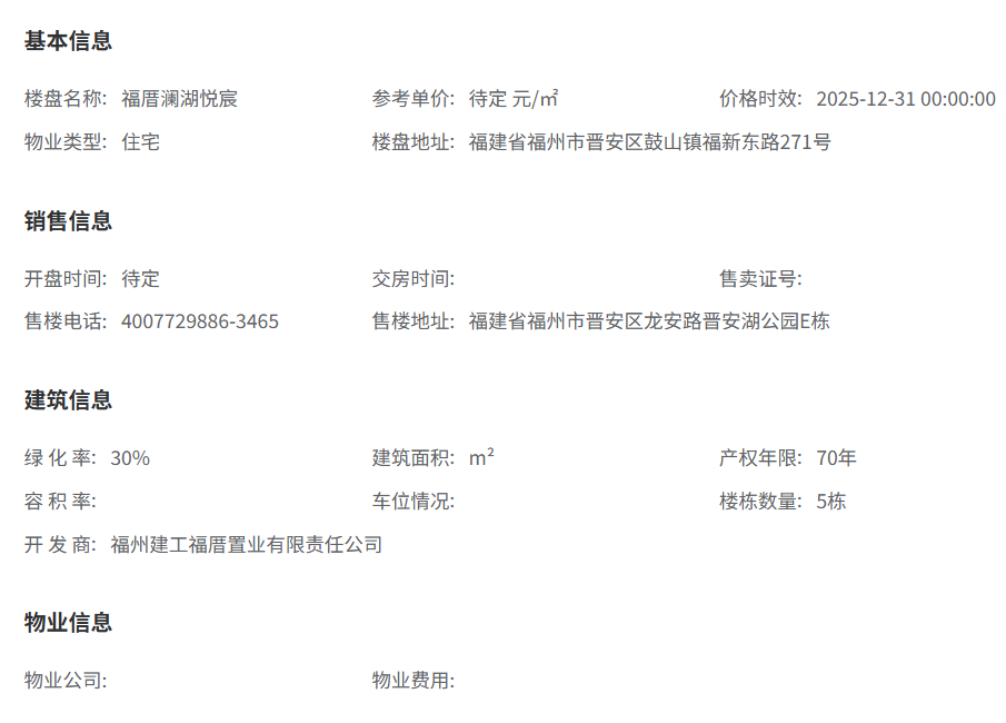 福厝·澜湖悦宸是福州东二环晋安湖板块的一个新晋住宅项目。该项目由福州建工福厝置业有限责任公司开发,该公司系福州建工集团旗下国企地产品牌,隶属于福州古厝集团。