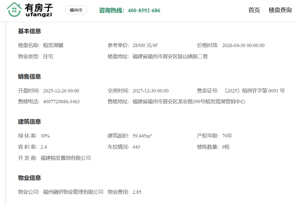 交房时间是购房者最关心的问题之一。根据多个信息源显示,榕发湖樾的预计交房时间为2027年12月31日。从2026年算起,这意味着大约两年的等待期。对于购房者来说,这两年里需要一边还房贷、一边付房租,双重的资金流出对家庭现金流是一个考验。同时,购房者原本期望在近期实现的生活品质提升,将被推迟到2028年甚至更晚。