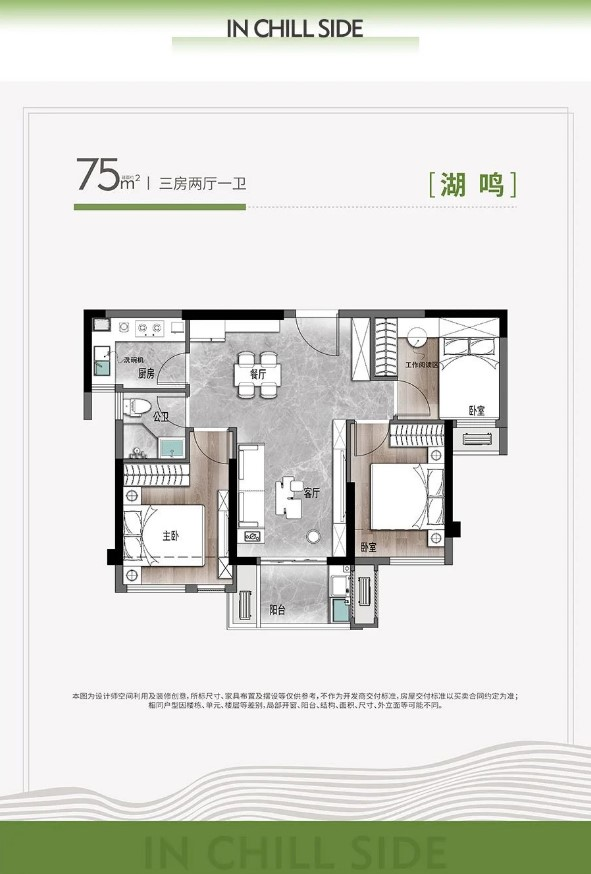 75平方米的小户型做到了三房两厅一卫的布局,三开间朝南,全明设计,空间利用非常合理。这个户型总价控制在130-140万之间,首付最低20万,是刚需购房者上车的绝佳机会。