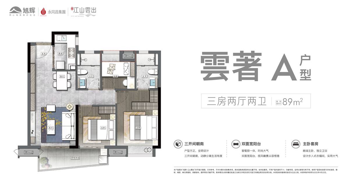旭辉江山雲的住宅拥有南向阳台,视野开阔无遮挡,独立玄关系统、穿衣镜、镜柜收纳、换鞋凳等多项设计提高了室内空间的利用率。