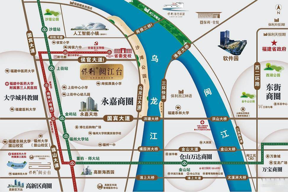 在医疗配套方面,保利阅江台周边三甲医院环伺,如福建中医药大学附属第三医院、福建医科大学附属协和医院西院、福建省立医院(金山分院)等,为业主们的健康保驾护航。