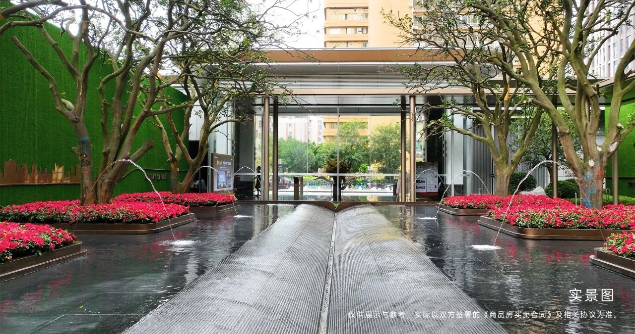 社区与配套:花园式生活,归家即度假 约150㎡的中央曲水花园、约50米长的风雨连廊,以及定制化的雕塑水景和云石铺砖,都展现了端礼著对于归家仪式感和社区品质的极致追求。这样的花园式社区,让每一位业主都能感受到隐于城央烟火中的静谧生活。