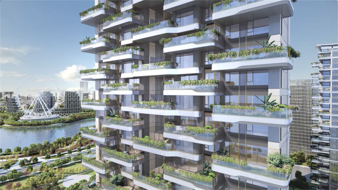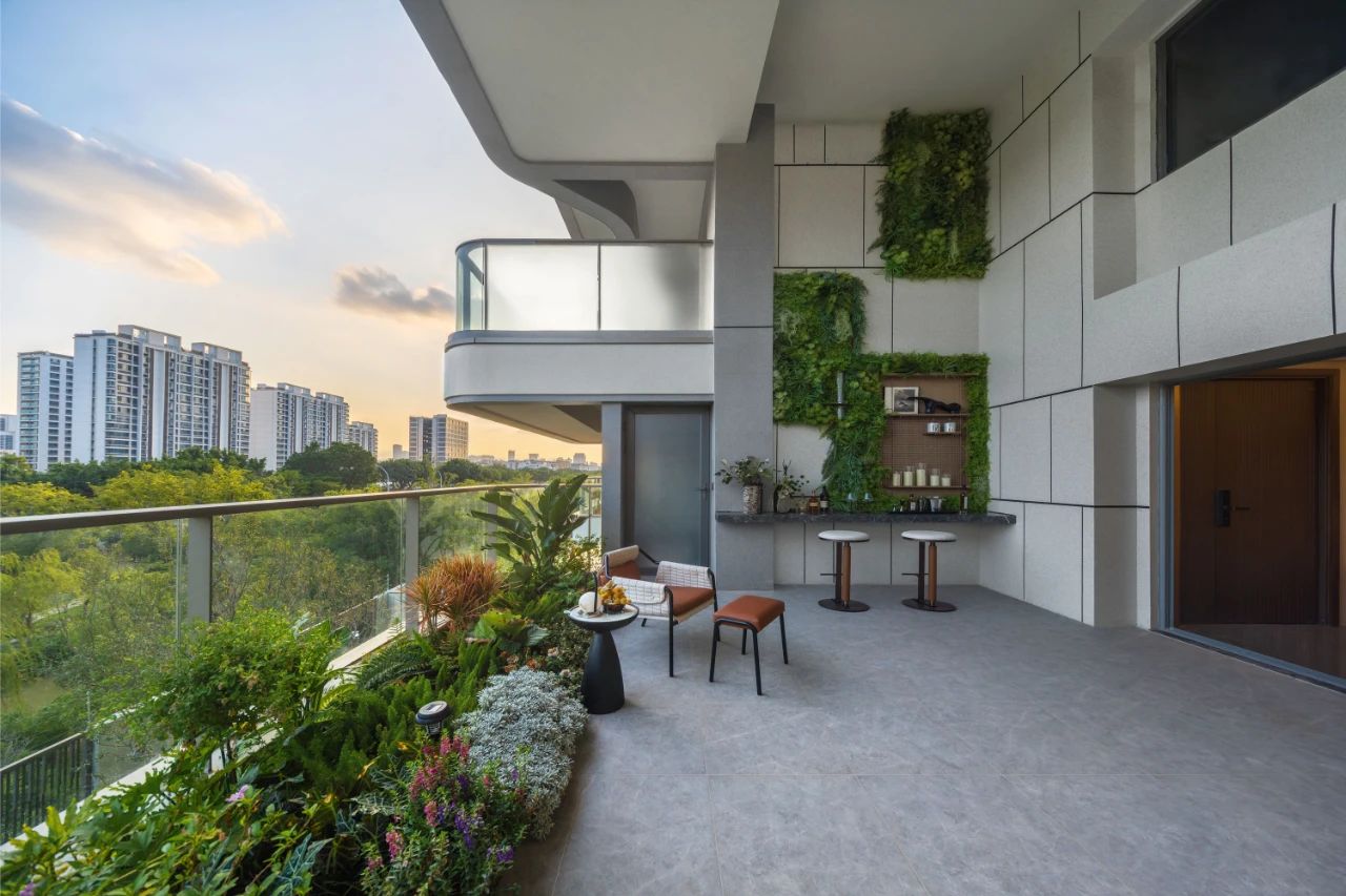 更为独特的是,保利国贸天琴湖采用了垂直森林实用住宅方案,这一方案不仅增强了土地利用率,而且改变了传统的居住模式,为每家每户实现了空中庭院的理想。这种设计让仰望星空重新回到了人类日常的居家生活中,带来了“前庭后院”“俯仰天地”的居住体验。