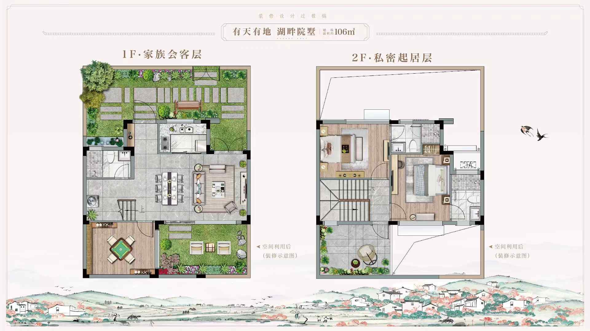 106㎡的合院商墅户型:阔绰阳台与室外花园的惬意生活 这款户型同样采用独栋双层设计,前庭后院设计让住户尊享阔绰阳台和室外花园,实现日常放松娱乐的多种用途。上下两层行动动向均为十字型,便于住户快速到达各个功能区域。该户型同样上层为静区、下层为动区,动静结合,互不干扰。主卧空间阔绰,每间卧室都私享独立卫浴与观景阳台。客厅大进深设计,十分通透,全明户型保证了四季采光充足。