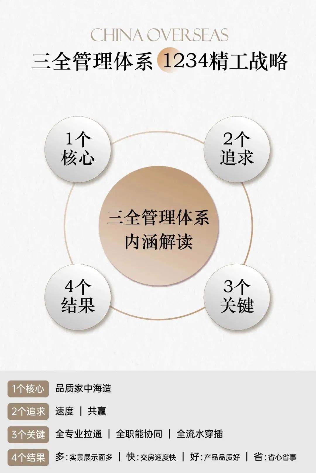 作为中国建筑旗下的房产旗舰,承建业务出身的中海,始终秉持着对建筑老本行的尊重和对工程质量的苛求态度。在集团标准化体系下,中海福建在实践中沉淀出“三全管理体系”。将精细化管理、运营能力提升至行业TOP,保证项目在建造过程中,能实现又快又好的高质量精工建造,真正诠释“品质家中海造”的品牌理念。