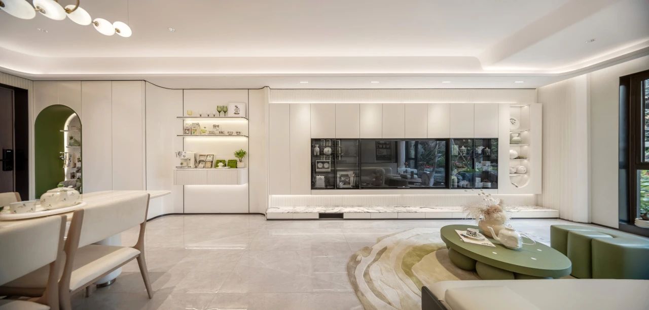 二、湖畔艺术人文,东方风雅的现代演绎 8#楼的独特之处在于其紧邻千亩旗山湖的地理位置,以及西侧直面大学城体育中心的开阔视野。从这里望去,湖光山色与现代建筑交相辉映,构成了一幅生动的现代都市画卷。楼下精心打造的湖境美学示范区,更是将东方文化的精髓与现代审美相结合,通过亭台楼阁、山水草木等元素,营造出一种既古典又时尚的艺术氛围。居民在此可以感受到东方风雅的独特魅力,享受到一份超脱尘世的精神愉悦。