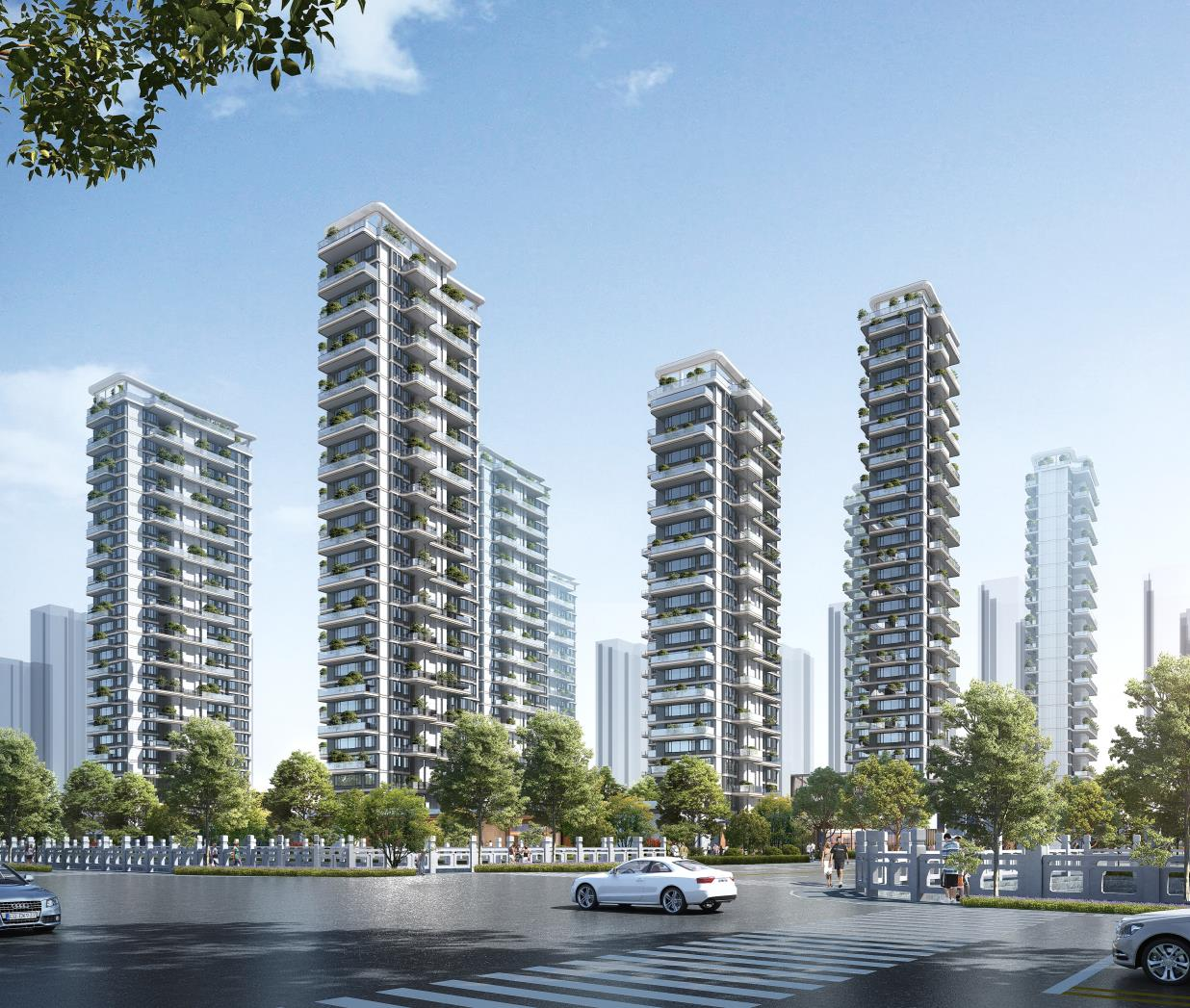 二、园林景观与生态环境 项目占地约45亩,拥有广阔的绿化空间和丰富的园林景观。中庭面积约8000平方米,被精心打造成一个私密而宁静的绿色天地。在这里,居民可以远离城市的喧嚣,享受到宛如度假般的悠闲时光。此外,项目还注重生态环境的保护,通过合理的植被配置和水景设计,营造出一个生态平衡、空气清新的居住环境。