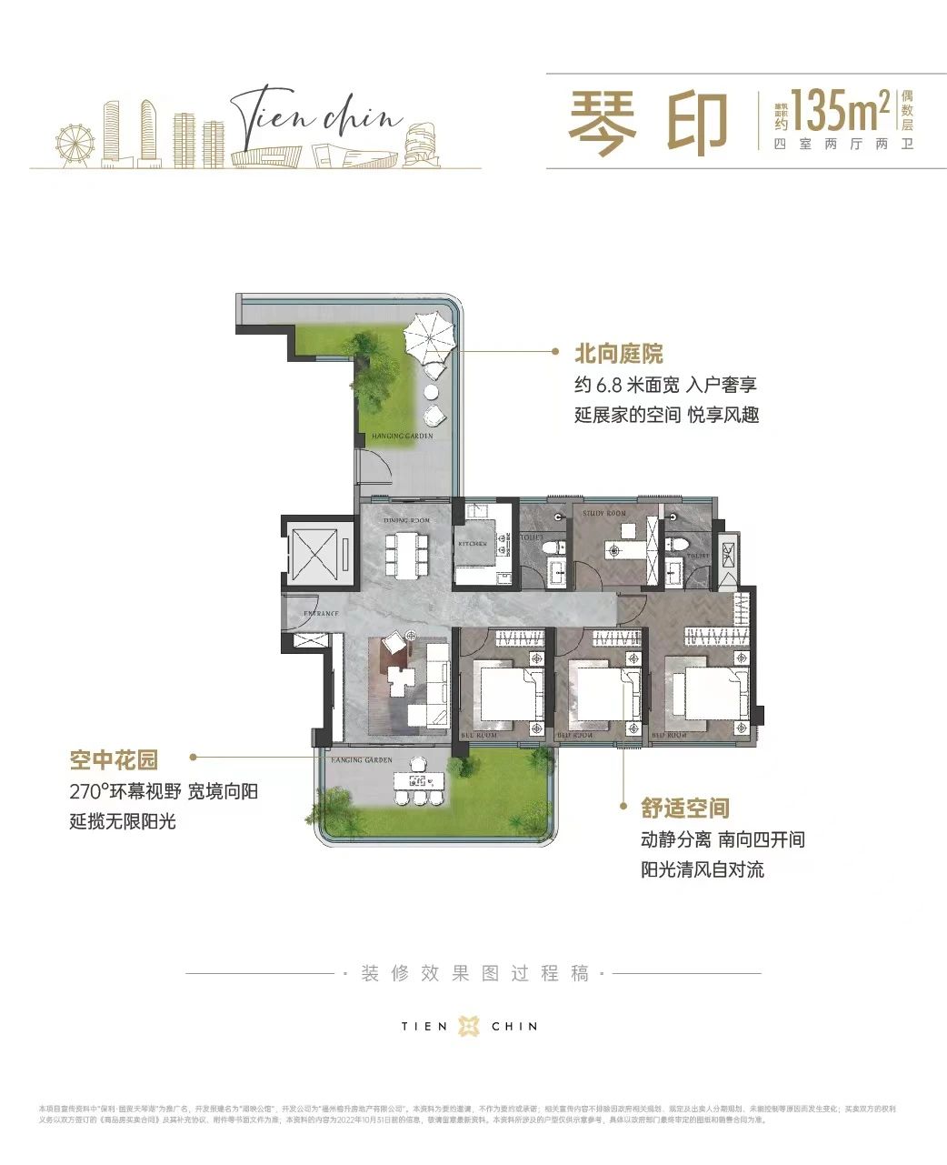 在户型设计上,保利国贸天琴湖尤为注重满足不同家庭结构的需求。其中,135平方米和143平方米的户型成为了项目的主打产品,占据了9栋楼的布局,共计532套,这一比例高达75%。这种设计思路清晰地表明,项目在规划之初就将目标客户群定位于刚性需求和改善型购房者。