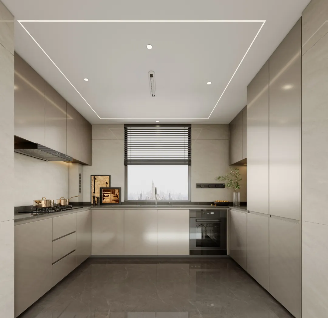 3. 工艺精湛: 华林雍璟深研日常生活细节,将工艺与生活紧密结合。从门窗框表面喷涂工艺到全屋金属踢脚线,从联轨移门到全屋墙布包裹,再到磁吸轨道灯、悬浮顶以及液态金属材质门牌等,每一处都体现了对工艺的极致追求。特别是在收纳工艺上,项目将生活的每个细节都考虑在内,如玄关处的超大收纳柜、厨房的高效收纳系统、卫生间的精细化收纳设计等,无不展现了对生活便捷性的深刻理解。