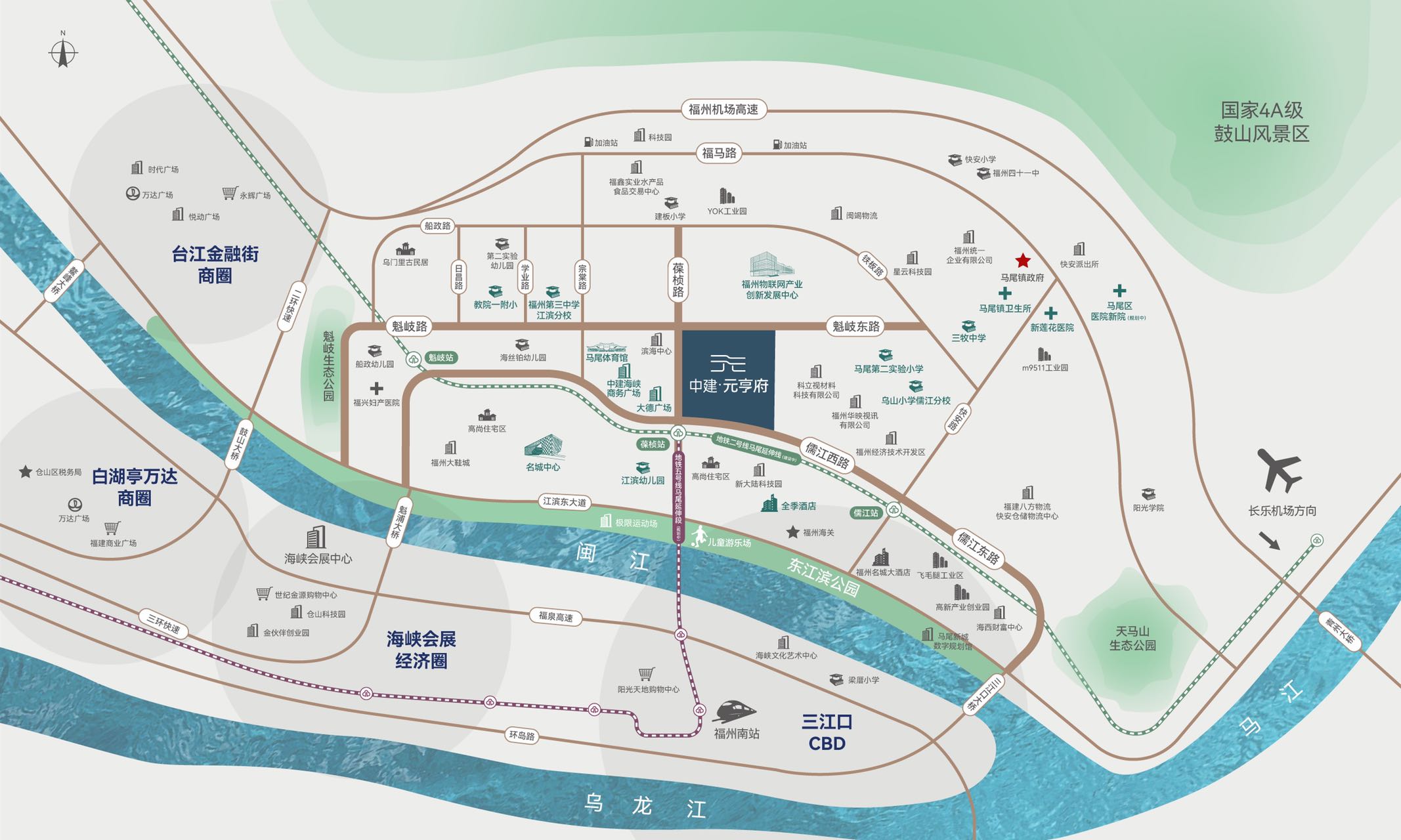 中建元亨府择址福州市马尾区东江滨板块,这里是城市发展的黄金地带,紧邻福州南站与地铁2号线葆桢站,构建起四通八达的立体交通网络。无论是前往台江金融街、东二环泰禾等繁华商圈,还是通往海峡会展中心参加国际盛会,都只需片刻车程,让您的生活与工作无缝切换,尽享便捷与高效。