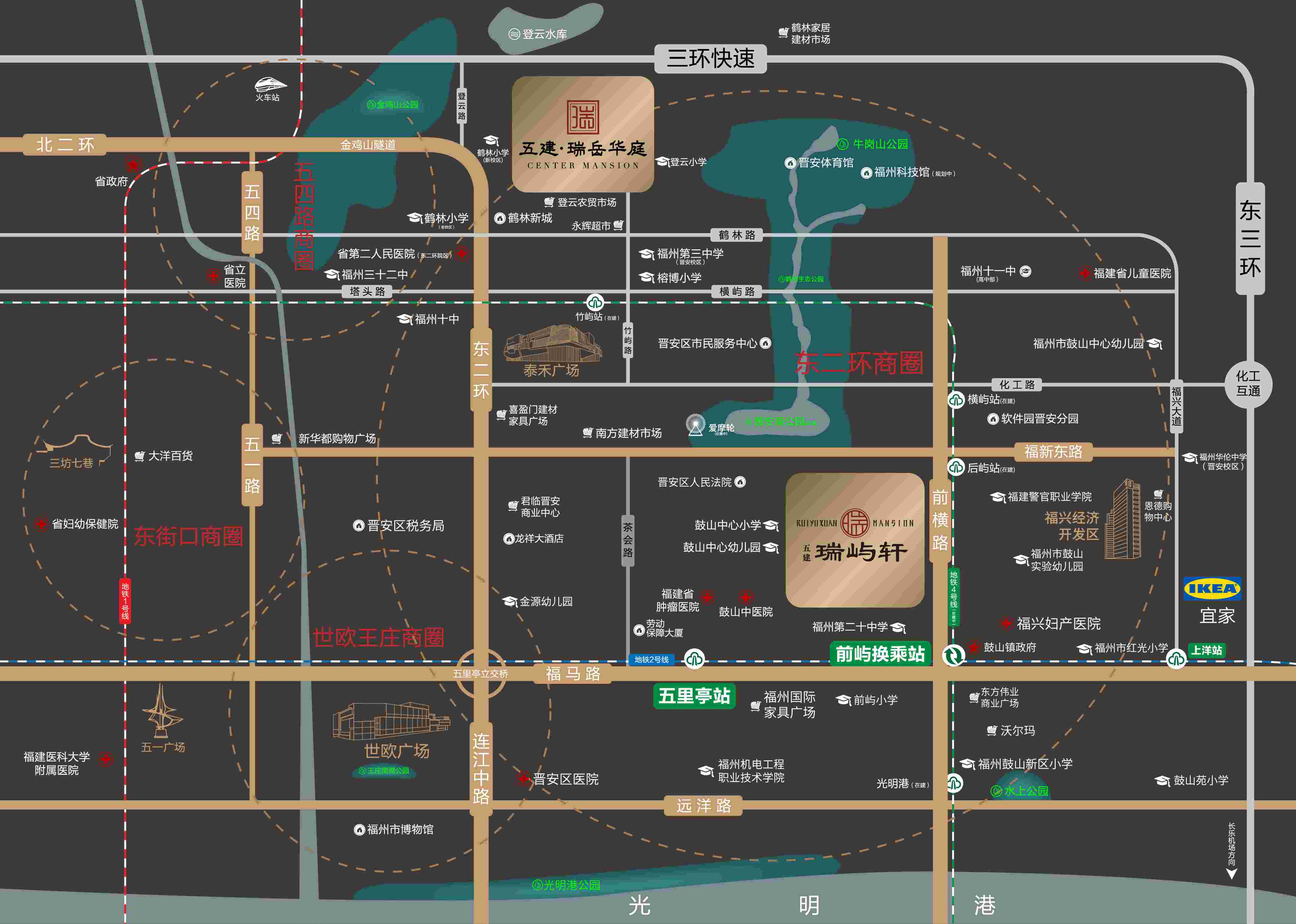 五建瑞屿轩傲立于福州市晋安区前横路与后屿路交叉口西北侧,这里是东二环的交通枢纽地带。想象一下,清晨的一缕阳光中,您轻松步行至地铁2号线前屿站,无缝换乘至全城任意角落;未来,更可近距离接触地铁4号线,8大换乘站点串联起城市的每一个精彩瞬间。驱车出行,接驳二环连三环,无论是商务出行还是周末郊游,都能快速抵达目的地,让生活因便捷而更加精彩。