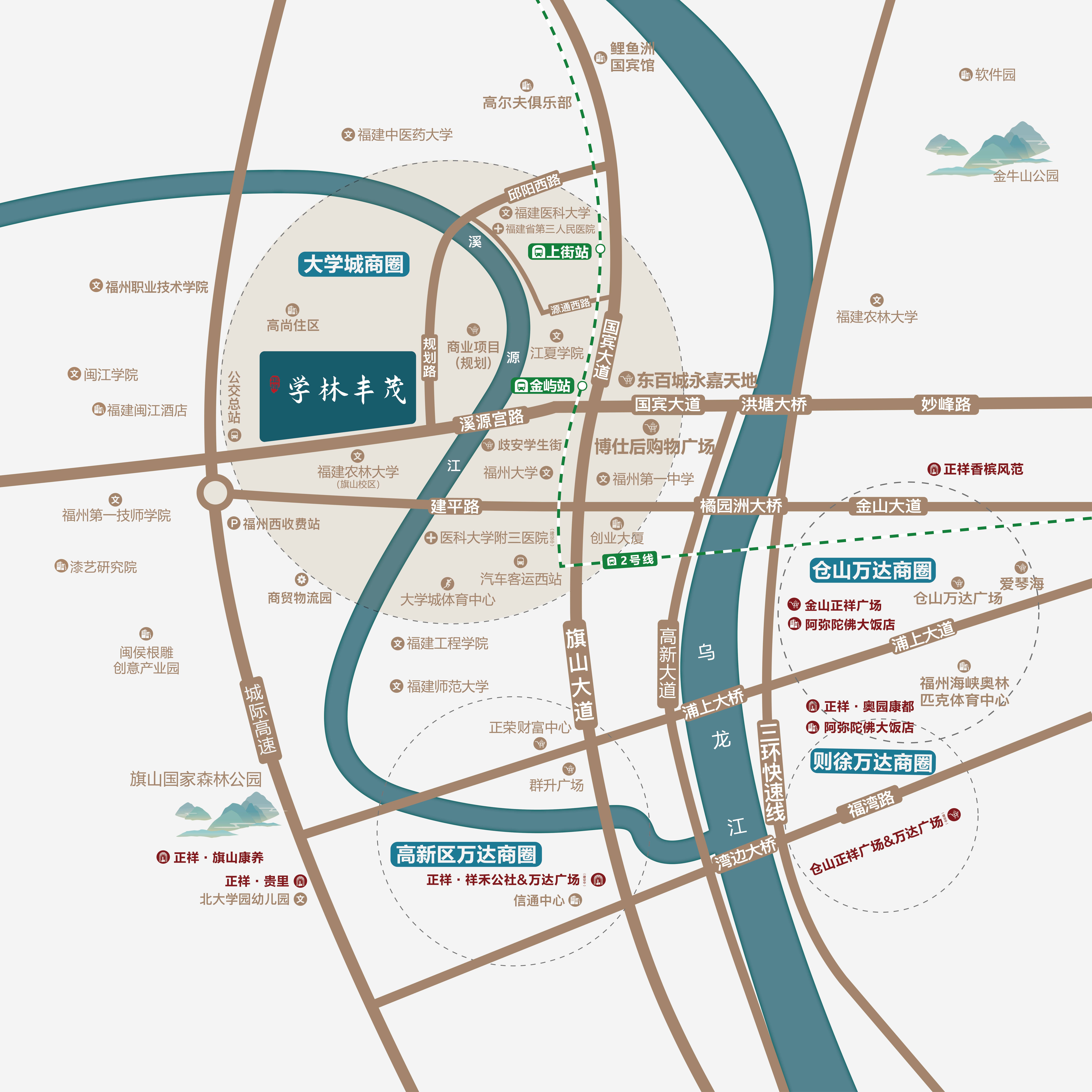 正祥学林丰茂项目周边设施相当完善,交通便利性是其一大亮点。项目临近福银高速和大学城公交站点,方便接驳地铁2号线金屿站,让出行变得更加便捷。通过洪塘大桥和橘园洲大桥,可以轻松畅达仓山和金山等地,满足居民多样化的出行需求。此外,周边还有永嘉天地、永辉超市等生活设施,为日常生活提供了极大的便利。