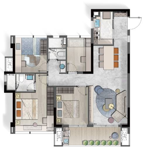 项目建筑面积约79-109㎡的三至四房全生命周期户型,高利用率、大阳台、多一房的设计理念,充分满足当代人居对美好生活的迭代诉求。套内空间利用大,0过道浪费更具性价比;双开间阳台采光通风条件好,将公园盛景嵌入眼帘;多一间功能房留给自己,打造专属自我的独立空间。无论是三口之家还是四世同堂,都能在这里找到属于自己的舒适生活空间。