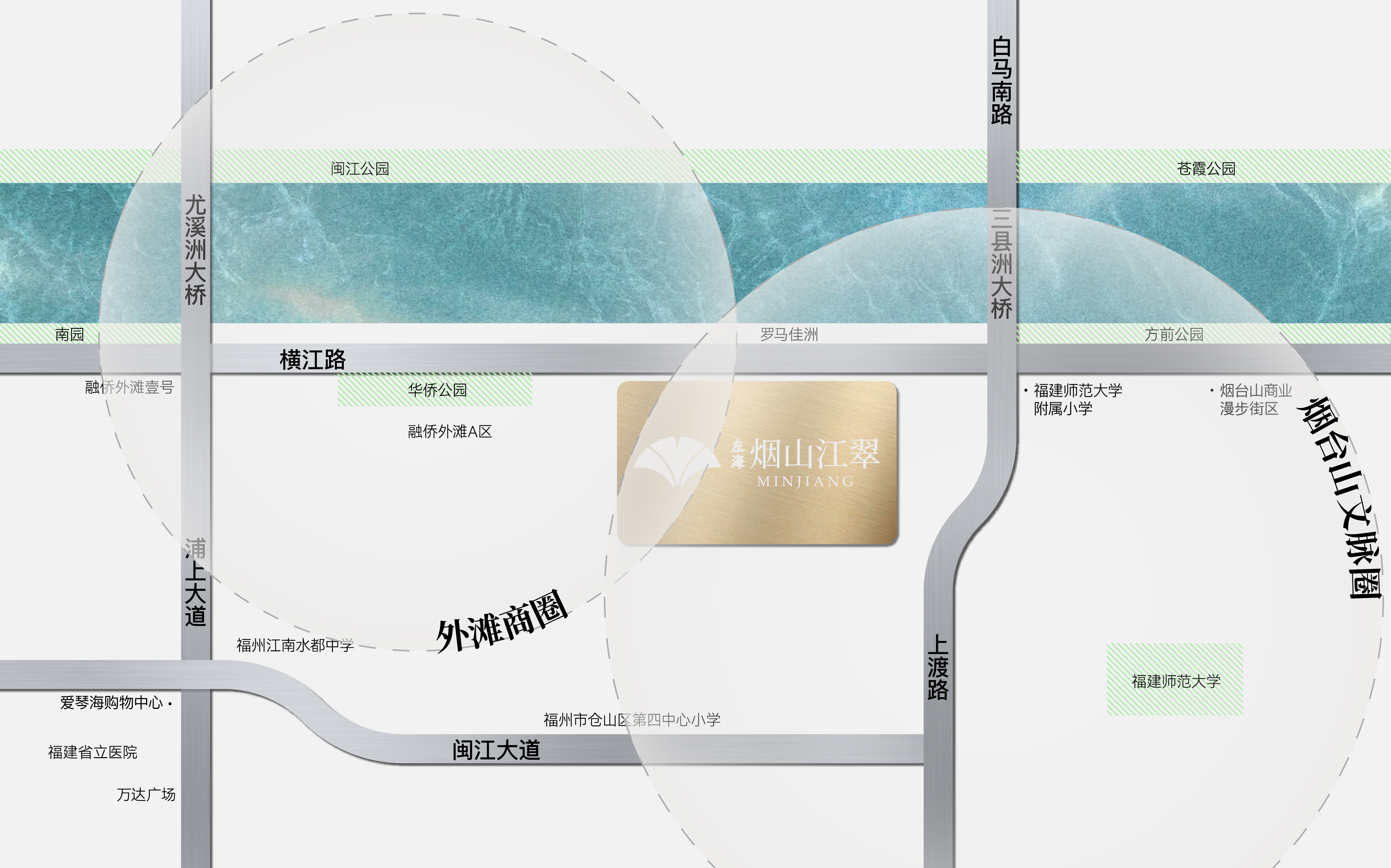 左海烟山江翠项目的周边配套完善,生活氛围浓厚。北侧紧邻罗马佳洲住宅小区,西侧则是江南水都大型住宅社区,这些成熟的社区为项目提供了良好的生活氛围和丰富的社交机会。此外,项目往东步行不远便是东尤溪洲路,往南200米即可连接至上渡路,多条公交线路穿梭其间,无论是日常出行还是休闲娱乐,都极为便捷。周边还有多个购物中心、医院等生活设施,满足居民的日常生活需求。