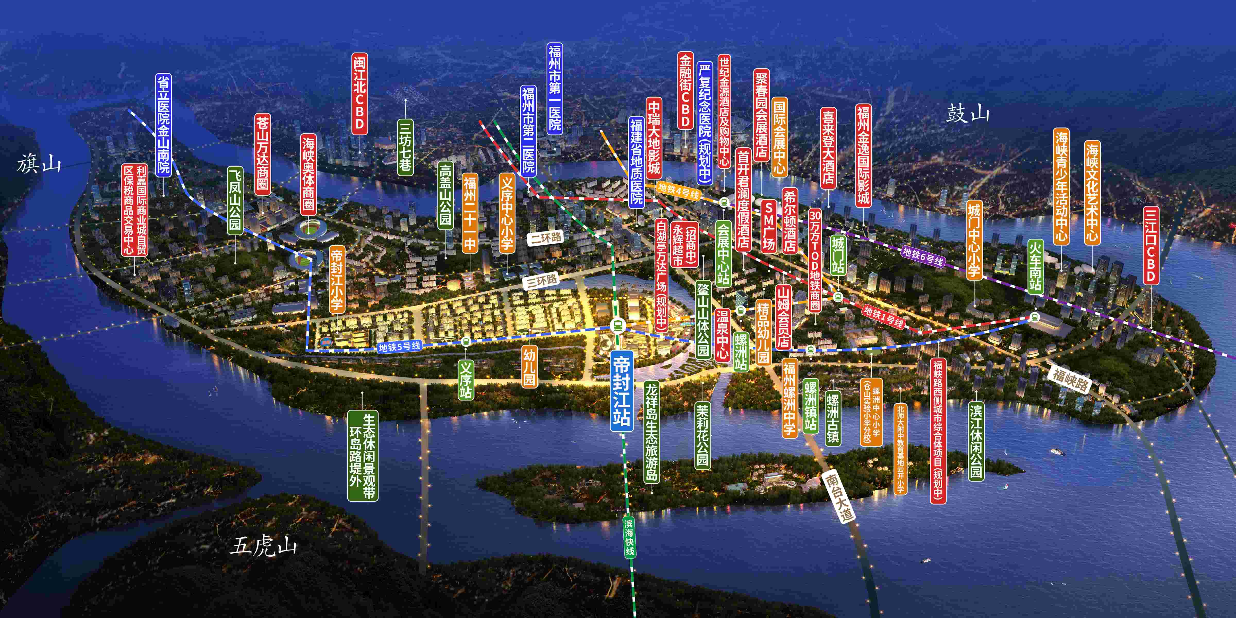 福州滨江左岸,坐落于福州市仓山区帝封江片区,紧邻南三环路帝封江站,是一座占地面积约563亩的大型综合社区。该项目凭借其优越的地理位置、便捷的交通网络、丰富的配套设施和优美的生态环境,成为了福州江畔生活的全新典范。滨江左岸地处城市的战略枢纽位置,享有“两横两纵”的交通网络优势。这里的经纬交织的交通网络包括三环高架、环岛路、南台大道以及福州南部高速等主要道路,形成了一个四通八达的交通体系。此外,项目距离地铁4号线、5号线以及滨海F1快线的交汇站仅约500米,使得居民可以轻松畅达福州各大繁华区域,享受城市的便捷与活力。