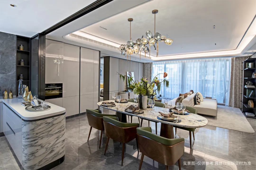 定制一体化智能触控面板,一键掌控生活。典雅奢华的空间设计搭配人性化的品质奢装,所到之处皆为匠心的极致打磨。前瞻未来生活趋势的岛式中西双厨,独立中央空调,嵌入式双开门冰箱/洗碗机/蒸烤箱等一线品牌高端家电,一体化定制橱柜,烹饪、品酒、聚餐,满足从容生活的不同场景。