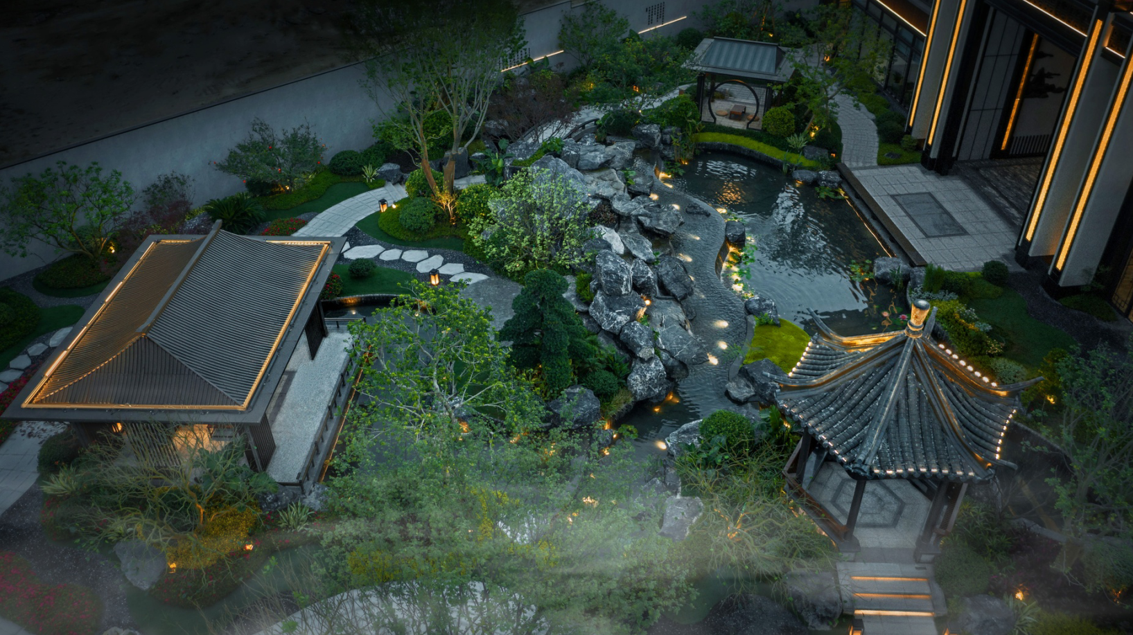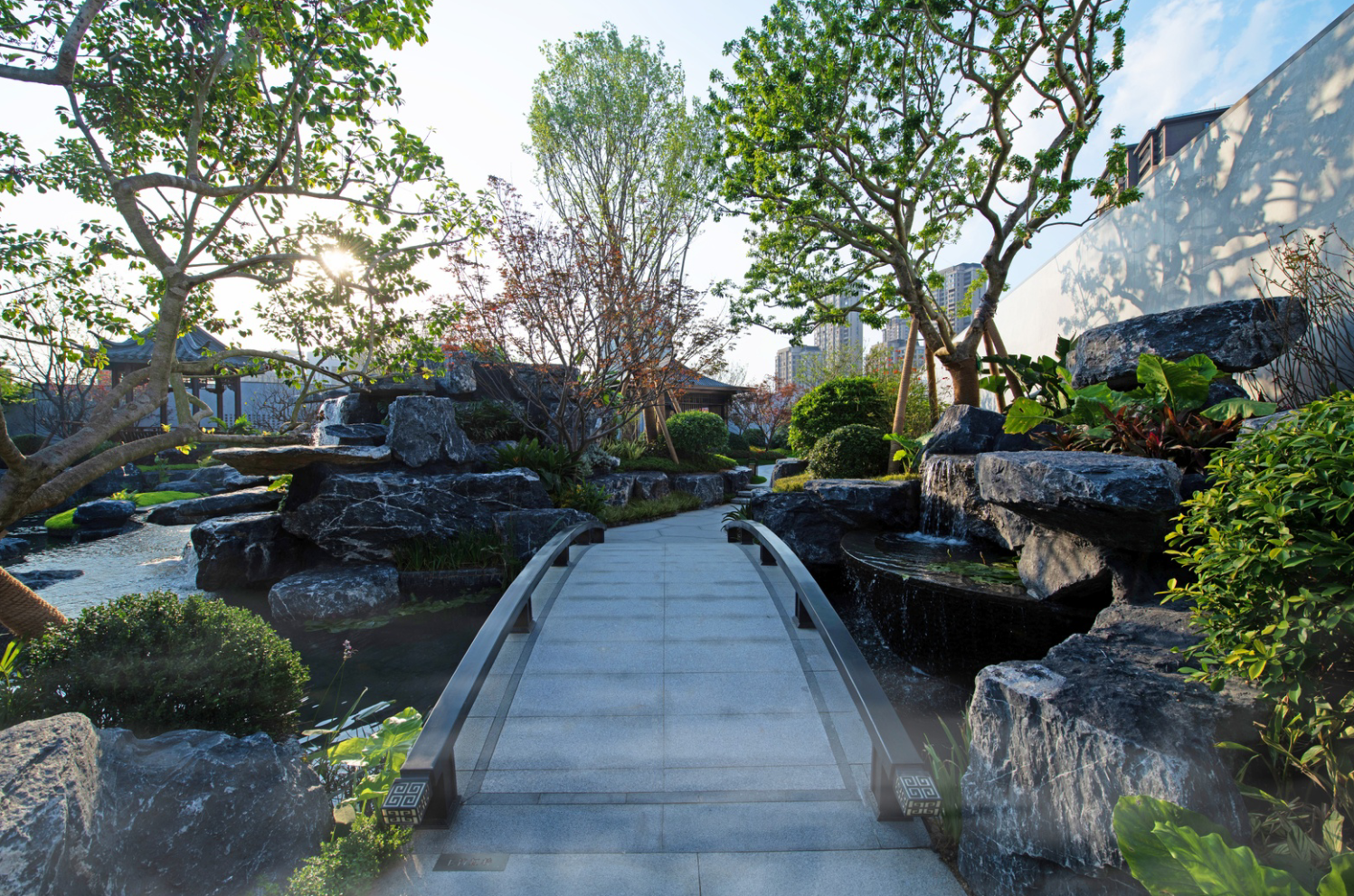 兰园美的·云玺台的园林景观设计独具匠心,以“一园三进八景”为主题,营造出四季有景、步移景异的优美环境。进入园区,首先映入眼帘的是宽敞的入口广场,这里绿树成荫,花团锦簇,为居民提供了一个宜人的迎宾空间。沿着主干道前行,可以看到三个进深不同的园林区域,每个区域都有其独特的景观特色。