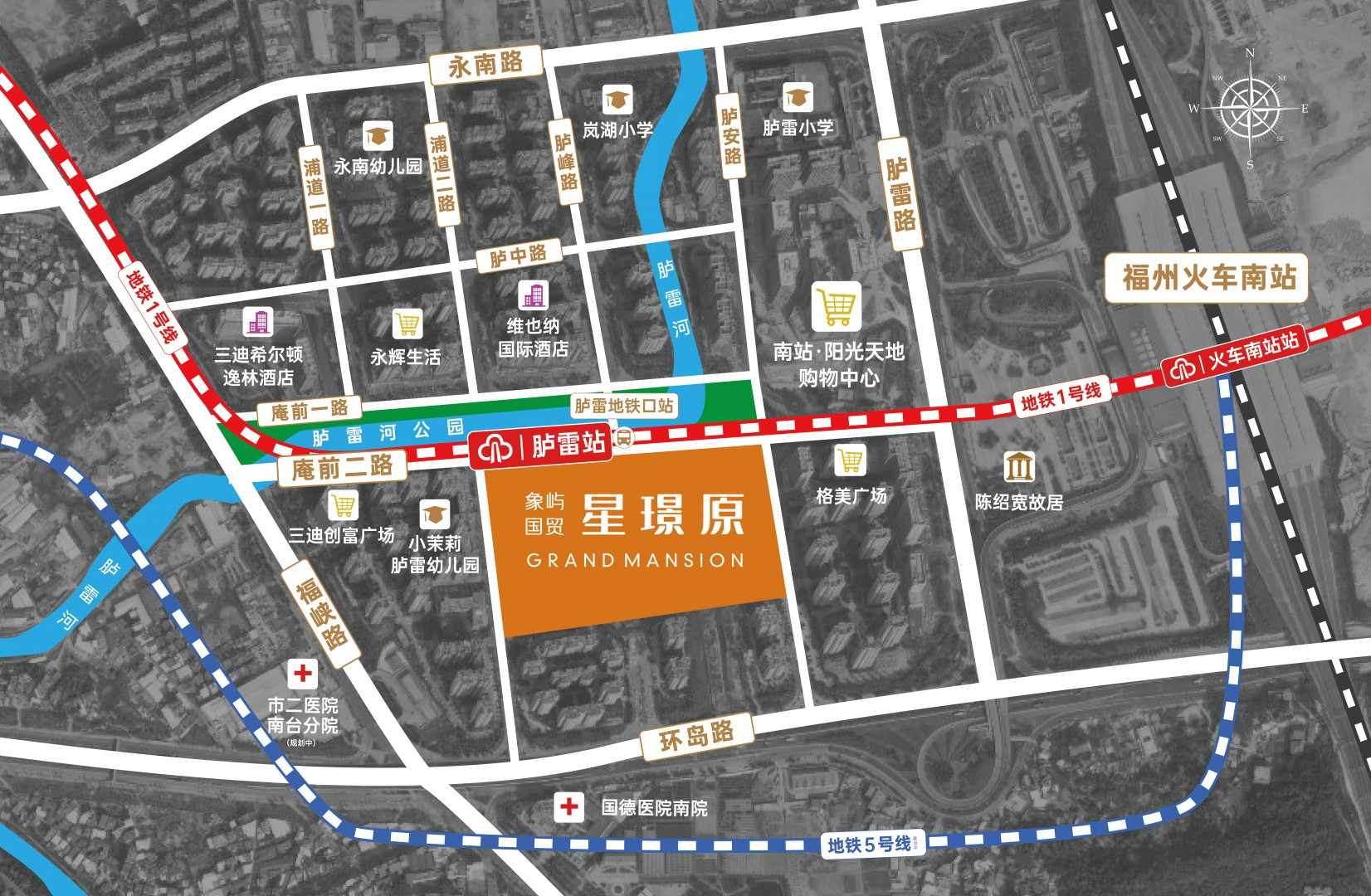 象屿国贸星璟原坐落于福建省福州市仓山区胪祥路5号,紧邻胪雷地铁站C东南口,步行仅需270米。这一地理位置的优势在于其交通的极致便捷性。项目周边3公里范围内分布着9个地铁站,最近的地铁站距离项目仅约50米,使得日常通勤和出行游玩都变得轻松无比。此外,项目周边公交线路丰富,1公里内有23个公交站,最近的公交站仅128米之遥。对于自驾者而言,福峡路、环岛路、胪雷路等交通干道环绕项目,提供了多样化的出行选择。
