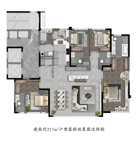 在繁华喧嚣的都市中,建发·瑞云推出的一款建面约217平方米的总裁级大平层,如同一股清流,为追求高品质生活的精英人士提供了理想的居住空间。这款大平层不仅拥有宽敞的居住面积,更在细节上处处彰显着奢华与舒适,致力于为住户打造最佳的生活体验。